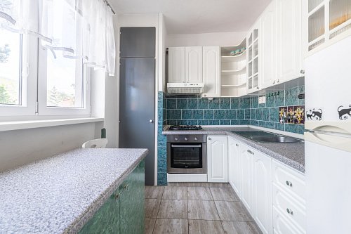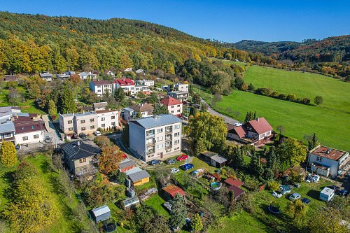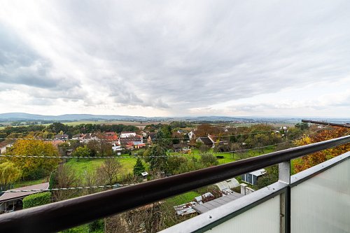 Byt se nachází ve 3. patře (ze tří) cihlového domu – žádní sousedé nad hlavou, jen klid a soukromí. Dva pokoje jsou orientovány na jižní stranu, kde se nachází také balkon s krásnými výhledy do okolí a na západy slunce. Obývací pokoj a kuchyně směřují na sever.