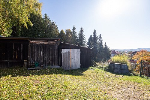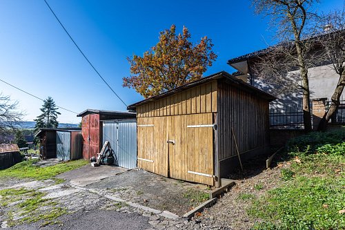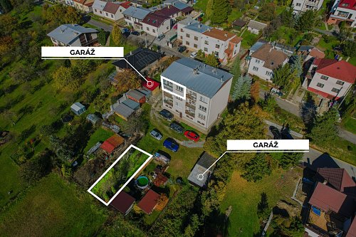 K bytu patří také podíl na pozemku o velikosti 243 m², který můžete využít pro odpočinek, posezení nebo menší zahrádku. Na pozemku se nacházejí dvě dřevěné garáže, které lze využít k parkování, uskladnění věcí nebo jako dílnu.