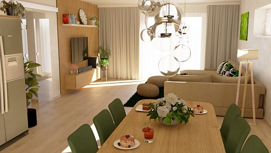 Všechny obytné pokoje jsou orientovány na jihovýchod, což zajišťuje dostatek denního světla a nádherný výhled do okolní přírody. Tento fakt zvyšuje komfort bydlení a přináší příjemnou atmosféru pro každodenní život.