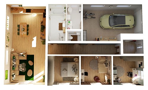 Celkově dům nabízí ideální kombinaci klidného bydlení, komfortu moderní stavby a možnosti přizpůsobit si interiér zcela podle vlastních představ.